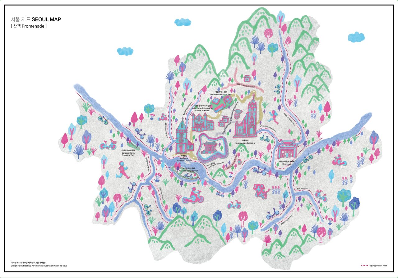 Seoul is a city overflowing with countless stories. Just as the Seoul that everyone knows is different, the map of Seoul drawn in each person’s heart will also look different. Cities around the world each have their own unique and colorful maps. The Seoul Map Project began with the idea that it would be wonderful to have a distinctive and beautiful map of Seoul, and has since been created for the Seoul Tourism Foundation and various publications. If you’d like to create a special map of Seoul—one that serves as a unique guidebook and contains special stories—please make a request using the button below. We will create the most special map of Seoul for you.